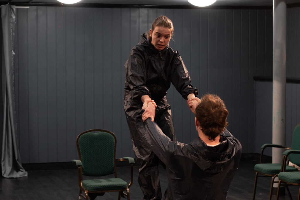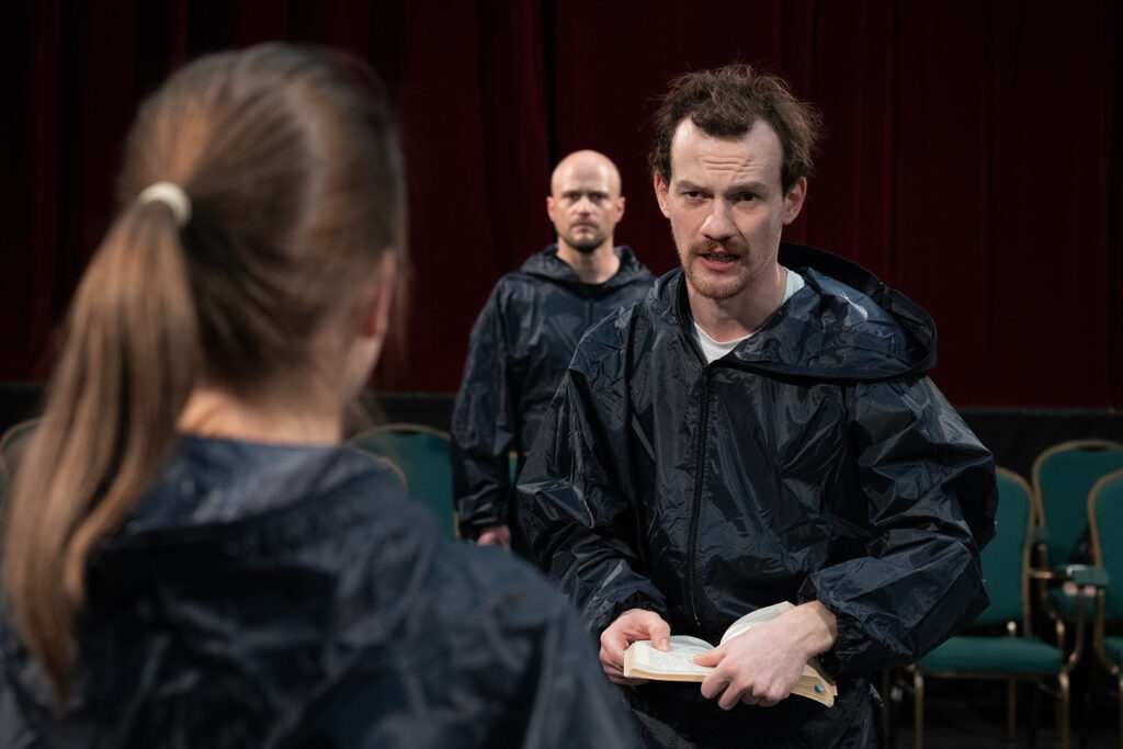 Dosztojevszkij klasszikus regénye a valaha megírt legizgalmasabb krimik egyike. Tantermi előadásunk ennek a lélektanilag tűpontos regénynek három színészre adaptált színpadi változatát veszi alapul és a rendőri kihallgatások feszült jeleneteiből kiindulva teszi fel és vitatja meg a raszkolnyikovi kérdéseket: