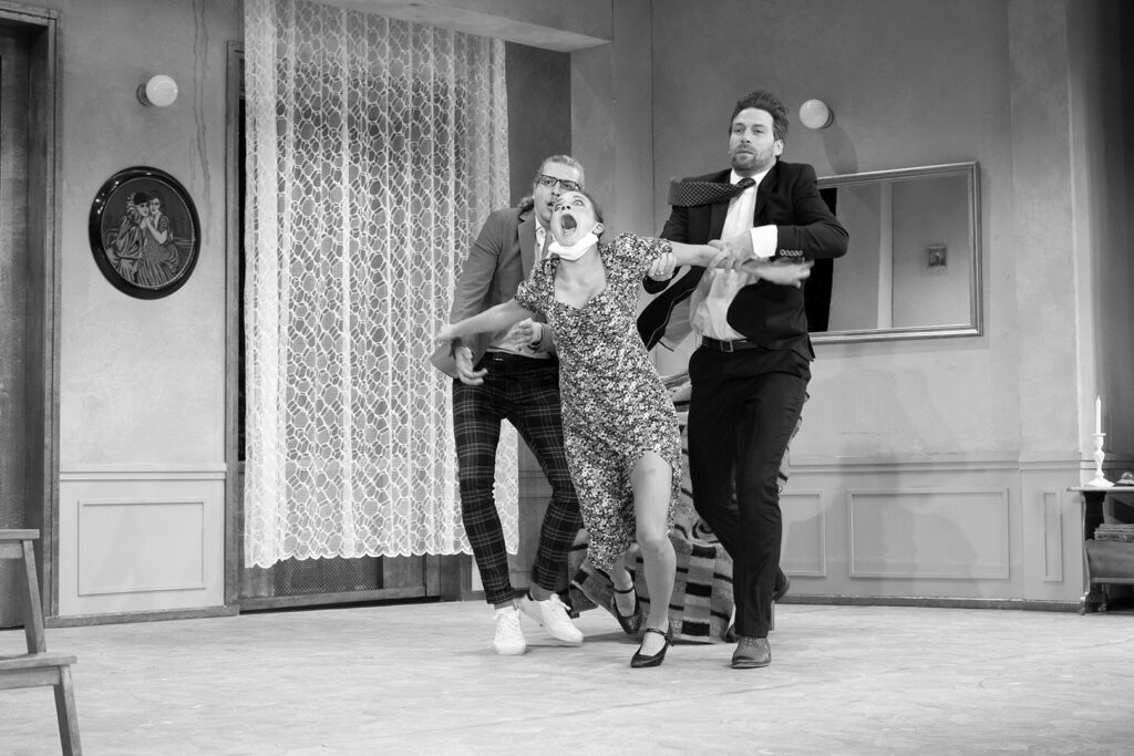 Alföldi előadása, kellemes vagy sem, erről regél. Arról, hogy mi sem nagyon jövünk ki egymással, a feletteseink pedig rútul kihasználnak, megaláznak minket, de közben ők sem boldogok. Füst Milán boldogtalanok címmel írt egy remek drámát, az inkább a szegénysorban szenvedőkről szólt, Alföldi most a bármilyen sorban élők boldogtalanságáról beszél, paradox módon egy vígjáték segítségével, amin ennek ellenére sokat lehet nevetni.